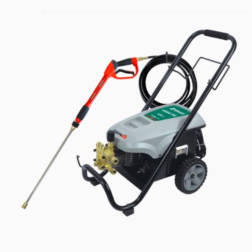 Presión de caudal máximo 140 / 2000 PSI bar Caudal máximo 438 lts/h Pistola con boquilla de spray SI Largo de manguera 8m / 280 bar / 50°C m Tipo de bomba con Transmisión Axial (plano inclinado con crapodina) Bomba axial SI Porta manguera Si 2 Ruedas de 180mm Peso Bruto 28,7 Kgs Tipo de Uso Intensivo Conector de Filtro de agua: incluido. Regulador de presión: Incluido. Manómetro: No incluido. Filtro de agua: incluido. No trae recipiente ni tanque para detergente. Picos intercambiables: Rojo (0°), Amarillo (15°), Verde (25°), Blanco (40°) y Negro (salida de detergente). Tipo de conexión: Ficha 20A. Interruptor de encendido: Accionamiento por contactor aislado de doble botonera (IP 55). Grado de protección: IP X5. Motor / Capacitor: Doble capacitor: 400mf (de arranque) y 60 mf (permanente). Medidas caja 58x42x39,5 cms Características: Pistones de acero con tratamiento superficial para disminuir el rozamiento. Con regulador bypass (motor de funcionamiento continuo). Consumo: 10A. 2900 RPM ATENCION: No debe usarse continuamente durante 30 minutos.