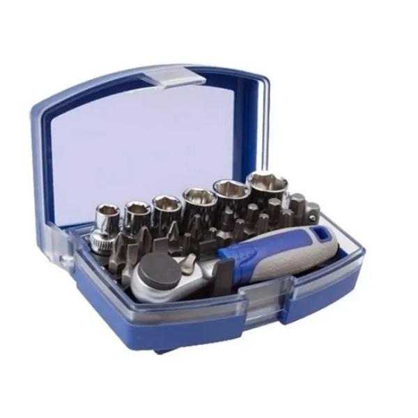 Incluye:<BR> 1 crique 72/5<BR> 6 tubos 6, 7, 8, 10, 11, 13 mm.<BR> 1 adaptador<BR> 2 puntas PH Bits 1, 2<BR> 2 puntas Bits PZ 1, 2<BR> 2 puntas de nivel de 4,6<BR> 4 puntas bits 3, 4, 5, 6 Hex.<BR> 5 puntas torx T10, 15, 20, 25, 30<BR>Peso: 340 grs<BR>Medidas: 110x75x45 mm