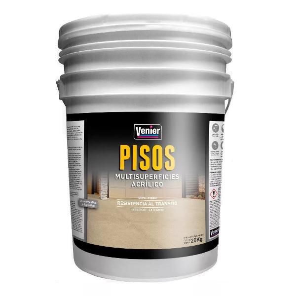 Pisos Multisuperficies Venier es un recubrimiento acrílico de base acuosa. Indicado para el pintado de multisuperficies: maderas, decks, pisos de cemento, garages, escaleras, gimnasios, canchas de tenis, fútbol, paddle, tribunas, etc. Puede ser aplicado también en pisos de ladrillo y cerámicas SIN ESMALTAR. De uso interior y exterior. Posee características antideslizantes. Una vez aplicado su película tiene muy buena retención del color, es resistente al desgaste y de fácil limpieza. Alta resistencia a la intemperie y los rayos UV. Diluyente 1era mano 10% de agua, las siguientes sin diluir. Secado entre manos de 4 a 6 horas, según el clima. Rendimiento 1 kg. rinde de 7 a 10 m2 por mano, según la superficie.