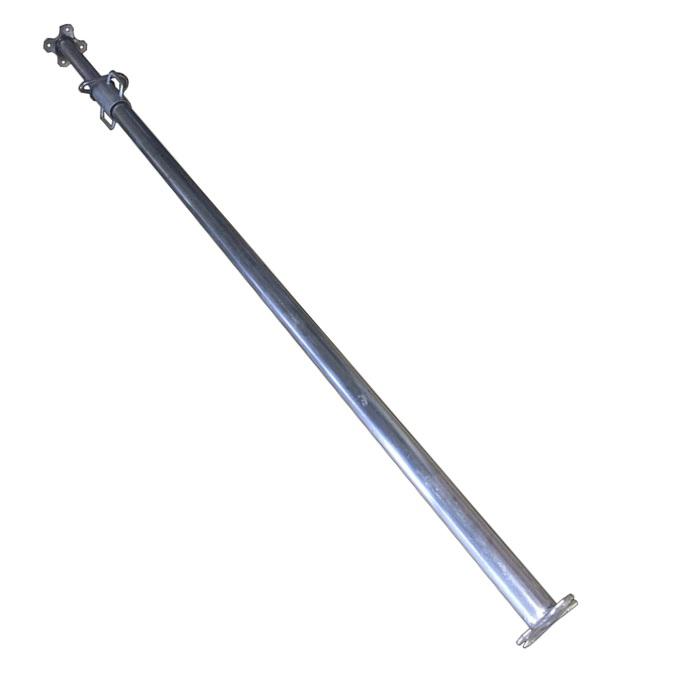 fabricados en Acero Galvanizado Medida Ajustable 2 a 3.90 mts Caño exterior 60 x 1,8 mm Caño Interior 48 x 1,8 mm Base 120 x 120 x 5 mm Perno Tipo G Peso 10.5 K Capacidad carga 950 K
